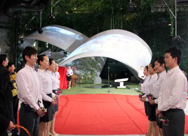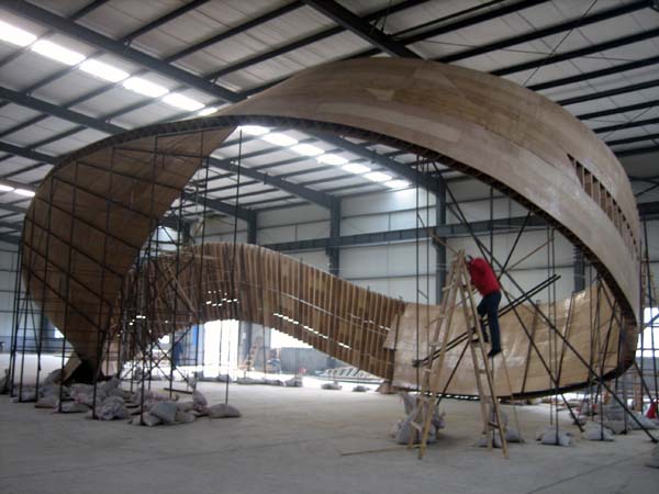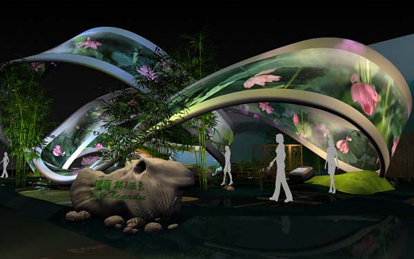 展館的設計形象湖南色彩濃厚,竹、紙、芙蓉花、桃花源、武陵源概念等湖南元素以及蔡倫造紙、隆平水稻、白石藝術等湖湘人文形象貫穿整個設計。環(huán)體主體材料為竹材,由國內竹材制造供應基地——湖南桃花江實業(yè)有限公司全程提供